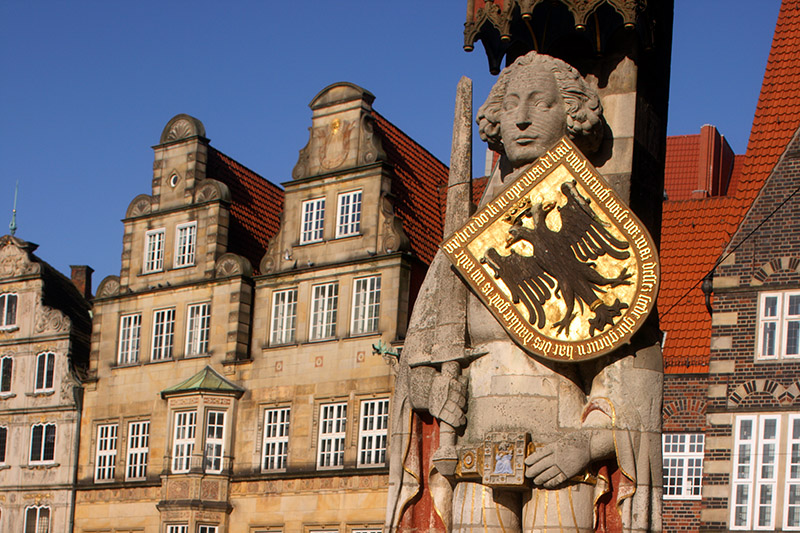 Куда более древнее сооружение на Рыночной площади – это 10-метровая статуя рыцаря Роланда, установленная здесь еще в 1404 году как символ свободы и независимости. Во время тура по этому городу Германии Вы узнаете интересные подробности об Императорском орле, который украшает щит Роланда, и многих других деталях и свидетельствах славного прошлого Бремена.