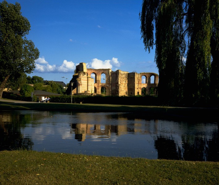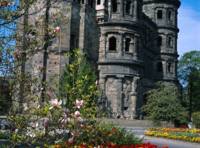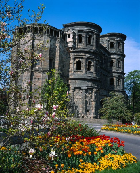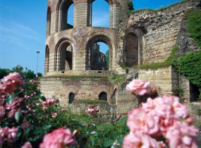 Именно здесь расположены великолепно сохранившиеся городские ворота Порта Нигра, знаменитые императорские термы и остатки терм Барбары II века н. э., римский мост, амфитеатр и другие здания... Памятники христианской эпохи Трира не менее значительны: и самый старый в Германии собор Св. Петра, и соединенная с ним галереей раннеготическая церковь Богоматери, и базилика императора Константина..