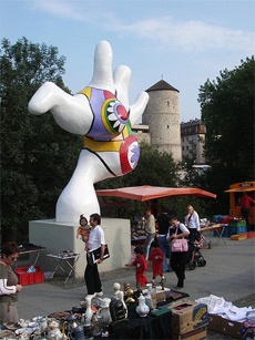 С обеих сторон от площади расположена улица Георгштрассе (Georgstrasse), названная в честь одного из английских королей, уроженца Ганновера, центральная прогулочная улица города. В каком бы на правлении по ней Вы не пошли, в сторону Оперы или к площади Штайнтор с импозантным высотным домом-стрелой, Вы останетесь в самом центре оживленной пешеходной и торговой зоны города. Полны магазинов и небольшие боковые улицы. Маршрут шоппинга можно продолжить и в Старом городе, на маленьких улочках которого расположено множество кафе, ресторанчиков и магазинчиков, а тому, кто еще не удовлетворил свой покупательский аппетит, советуем спуститься к реке Ляйне, на берегу которой по субботам уже более 30 лет собирается большой Блошиный рынок. Здесь Вы также увидите один из символов Ганновера – необычную скульптурную группу 3 dralle Nanas.