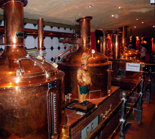 Через Хопфенштрассе наша экскурсия движется к пивному кварталу, к бывшему немецкому пивоваренному заводу „Bavaria St. Pauli Brauerei", где производилось популярное „ASTRA Urtyp". На этом месте теперь появился новый квартал с впечатляющими зданиями, которые образуют интересный силуэт. Около отеля „Hotel Hafen Hamburg", прежнего Seemannsheim, пивоварня воздвигла памятник с медным пивным котлом. Отсюда открывается замечательный вид на порт, на пристань и старый тоннель под Эльбой.