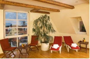Отель предлагает полностью оборудованный фитнес-центр с тренажерами, сауной, паровой баней, солярием и инфракрасной кабиной. Из зоны отдыха открывается восхитительный вид на крыши Нордлингена.