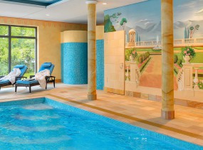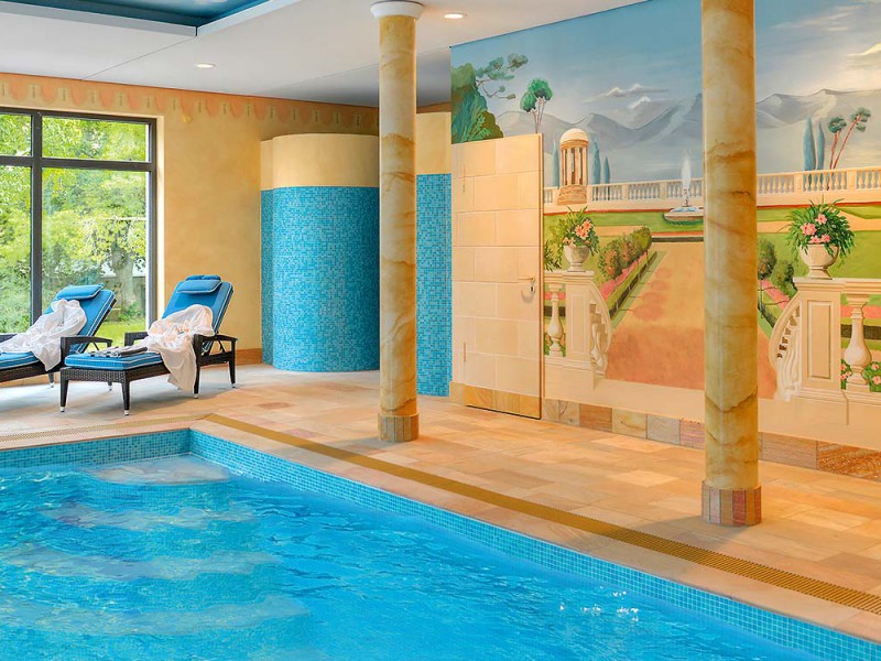 В отеле открыт новый закрытый бассейн с панорамным видом на сад.