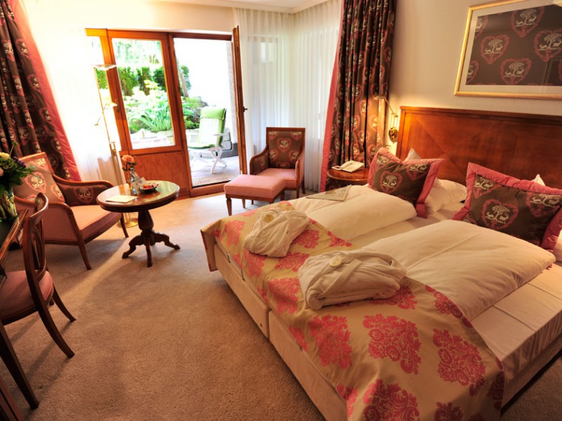 На свежем воздухе гостей ждут просторные лужайки для принятия солнечных ванн, сад с удобными креслами и зонтиками для отдыха, в течение всего года функционирует открытый бассейн (29 °C), сауна"Vital-Therme" и ледяной фонтан.