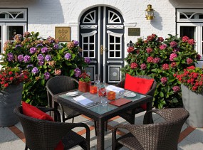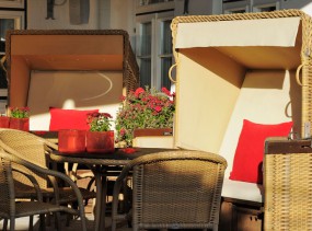 В теплую погоду можно насладиться трапезой на террасе отеля.