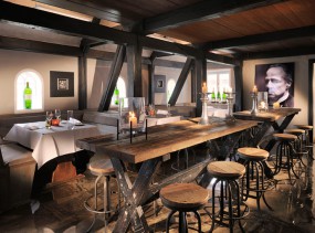 Небольшой, элегантный ресторан для гурманов Боденсдорф со звездой Мишлен и 18 пунктами рейтинга Го Мийо предлагает кулинарные блюда с французскими акцентами и хороший выбор вин в современной обстановке.