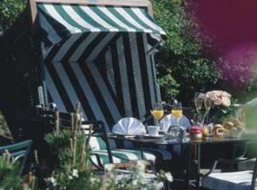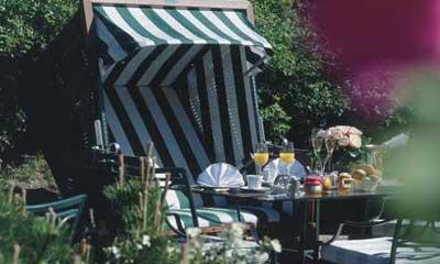 В отеле Morsum-Kliff есть закрытая терраса с шезлонгами, где можно читать, дремать и мечтать, а также выпить кофе со свежими пирожными из собственной пекарни.