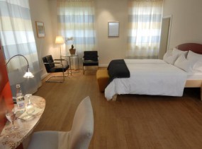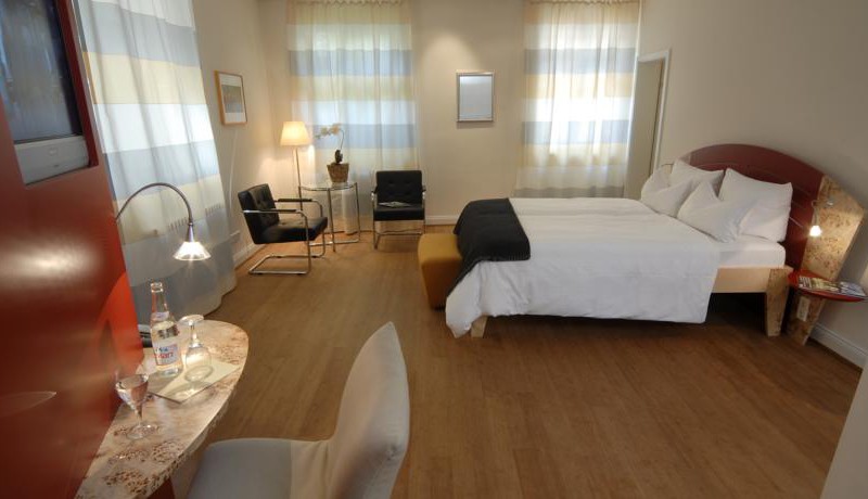 В отеле 10 двухместных номеров, 2 одноместных номера и 4 люкса. Из окон номеров открывается вид на реку, мост, замок, романтический внутренний двор и черепичные крыши Старого города.