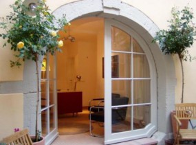 В летнее время завтрак накрывают под открытым небом в романтическом внутреннем дворе, а на террасе в течение всего дня предлагают прохладительные напитки.