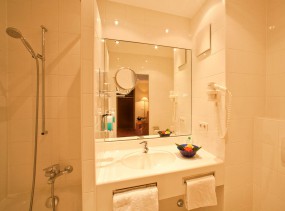 В номере: душ/ванна, туалет, фен, косметическое зеркало, радио, телефон, телевизор с плоским экраном, спутниковое телевидение и каналы Sky, письменный стол, доступ в интернет (Wi-Fi).