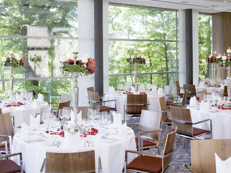 В ресторане отеля Mövenpick и на террасе с видом на парк подаются блюда швейцарской, местной и интернациональной кухни.