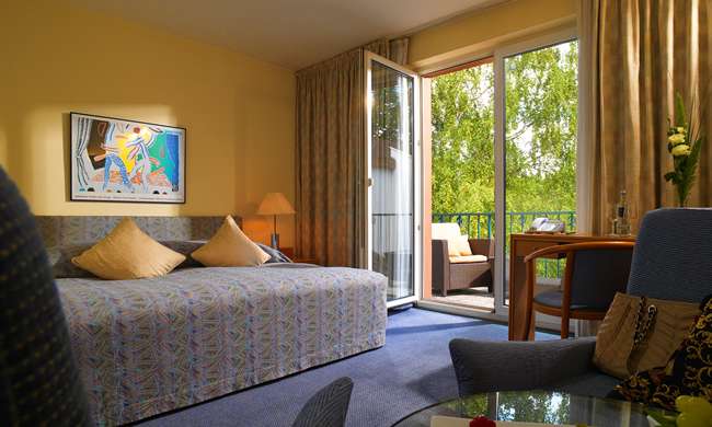 Отель находится в большом парке в Ной-Изенбурге, в здании 16-го века; в 15 км от центра города, и выставочного центра, в 10 км от аэропорта.